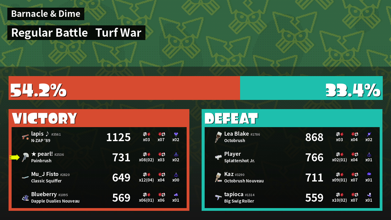 | Medals | #1 Base Defender #1 Damage Taker #1 Ink Consumer | ||