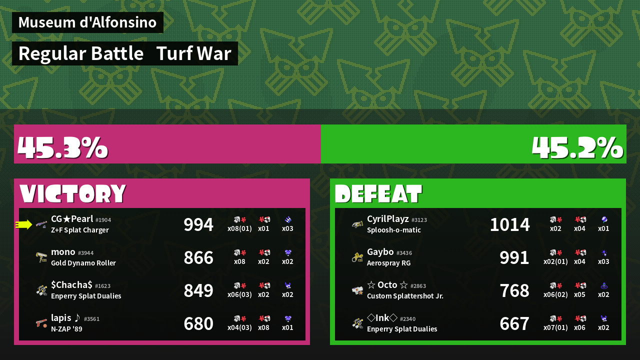 | Medals | #1 Overall Splatter #1 Turf Inker #1 Damage Taker | ||