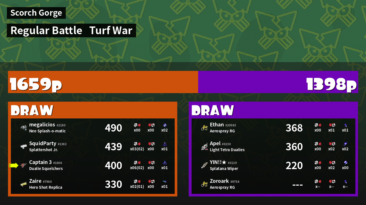 | Mode | Turf War - Regular Battle | ||