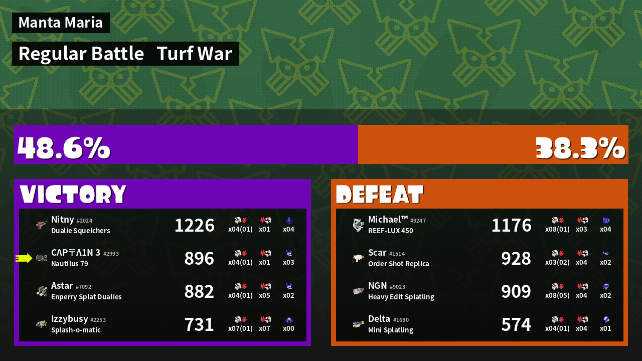 | Medals | #1 Splat Assister #2 Overall Splatter #2 Turf Inker | ||