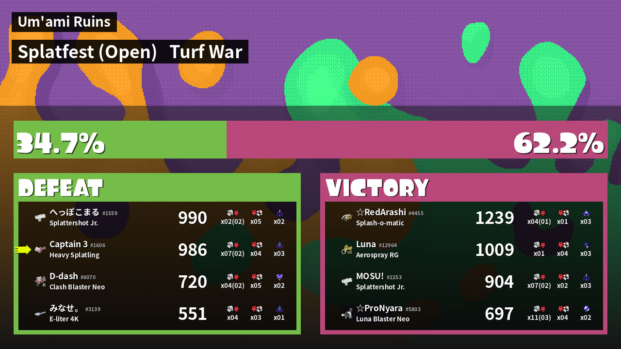 | Mode | Turf War - Splatfest (Open) | ||