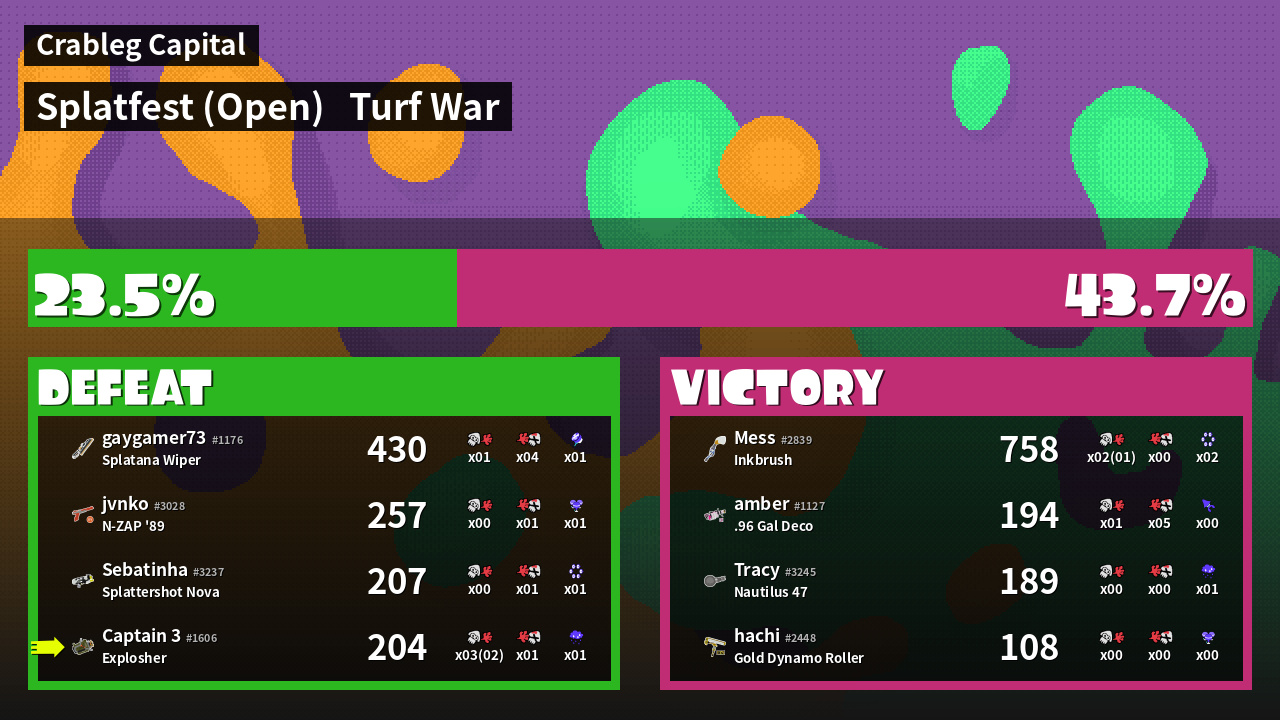 | Medals | #1 Overall Splatter #1 Super Jump Spot #1 Enemy Splatter | ||