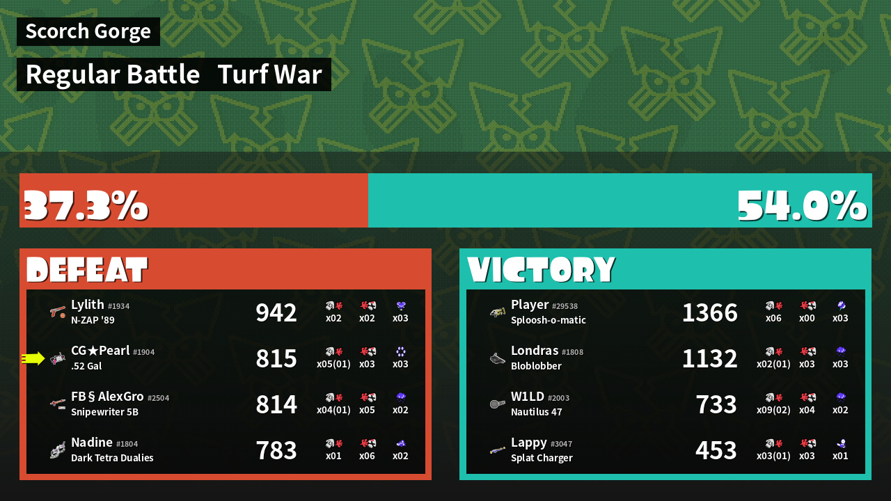| Medals | #1 Overall Splatter #1 Enemy Splatter #1 Splat Assister | ||