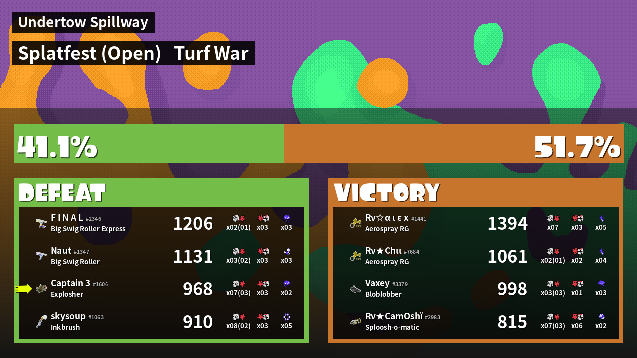| Medals | #1 Super Jump Spot #1 Splat Assister #1 Ink Consumer | ||