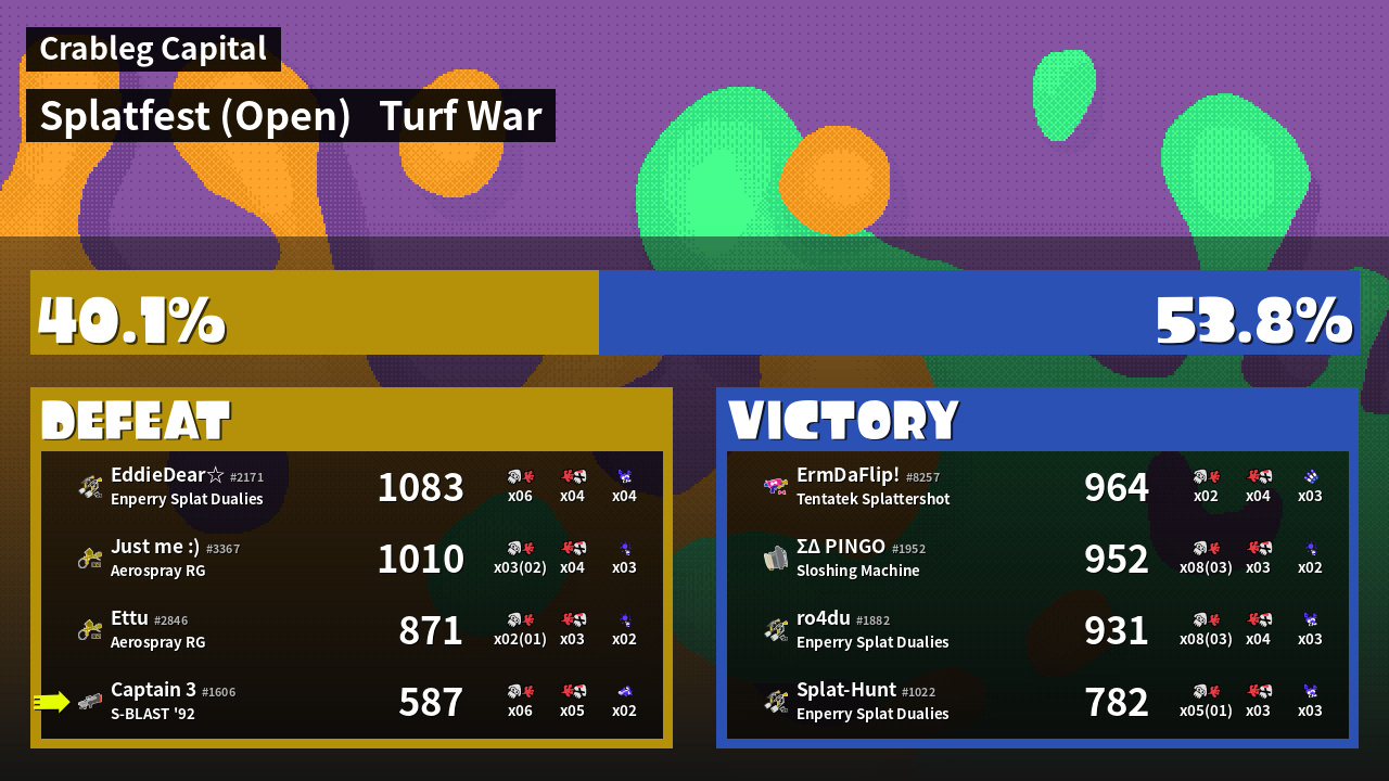 | Mode | Turf War - Splatfest (Open) | ||