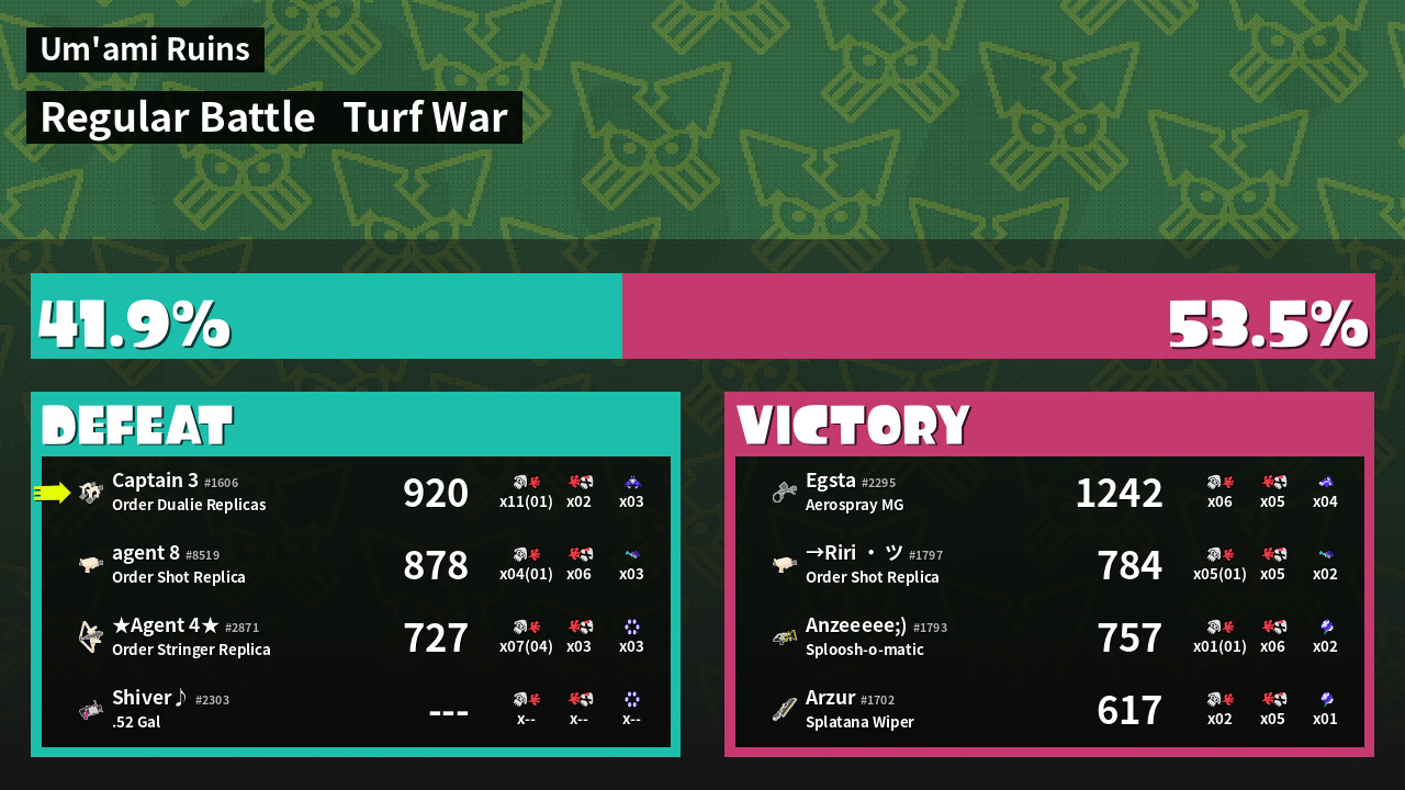 | Mode | Turf War - Regular Battle | ||