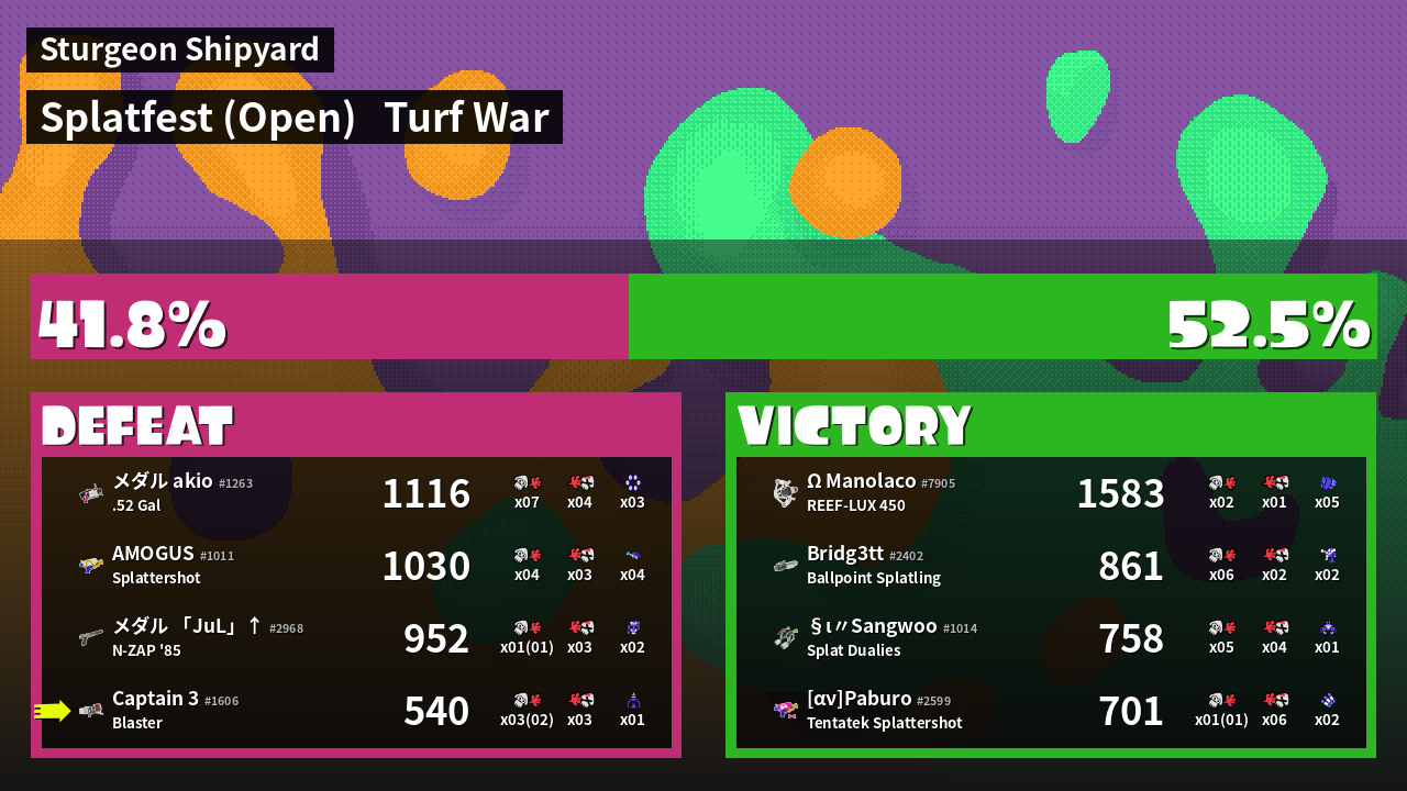 | Medals | #1 Splat Assister #1 Base Defender #1 Ground Traveler | ||