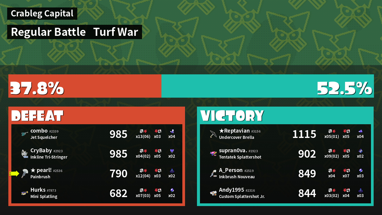 | Medals | #1 Enemy Splatter #1 Base Defender #1 Damage Taker | ||