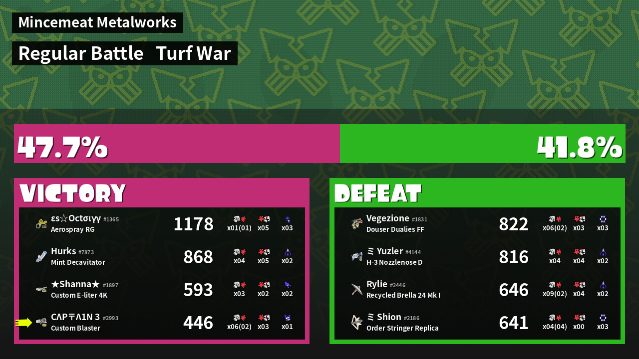 | Medals | #1 Overall Splatter #1 Popular Target #1 Enemy Splatter | ||