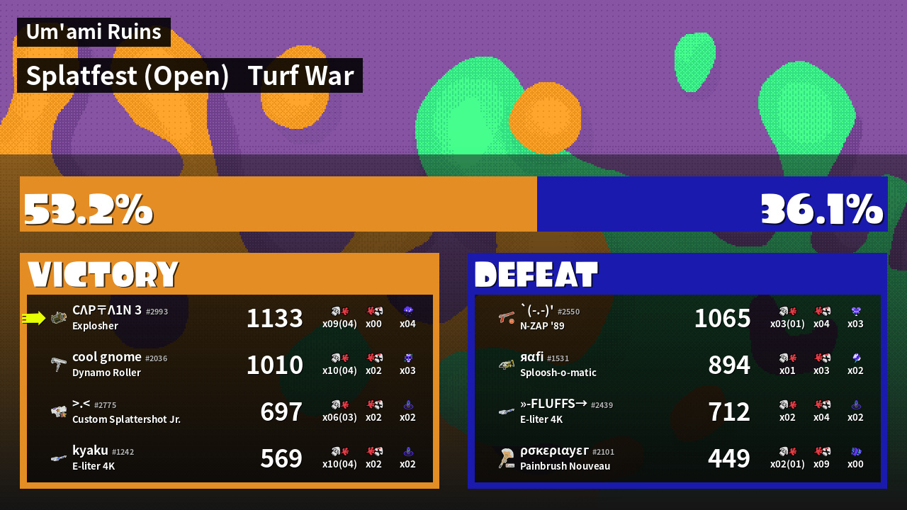 | Medals | #1 Turf Inker #1 Enemy-Base Inker #1 Splat Assister | ||