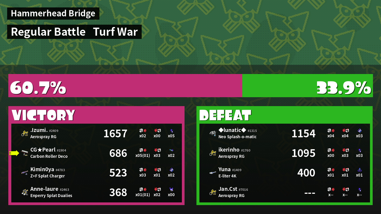 | Weapon | Carbon Roller Deco ( Burst Bomb / Trizooka) | ||
