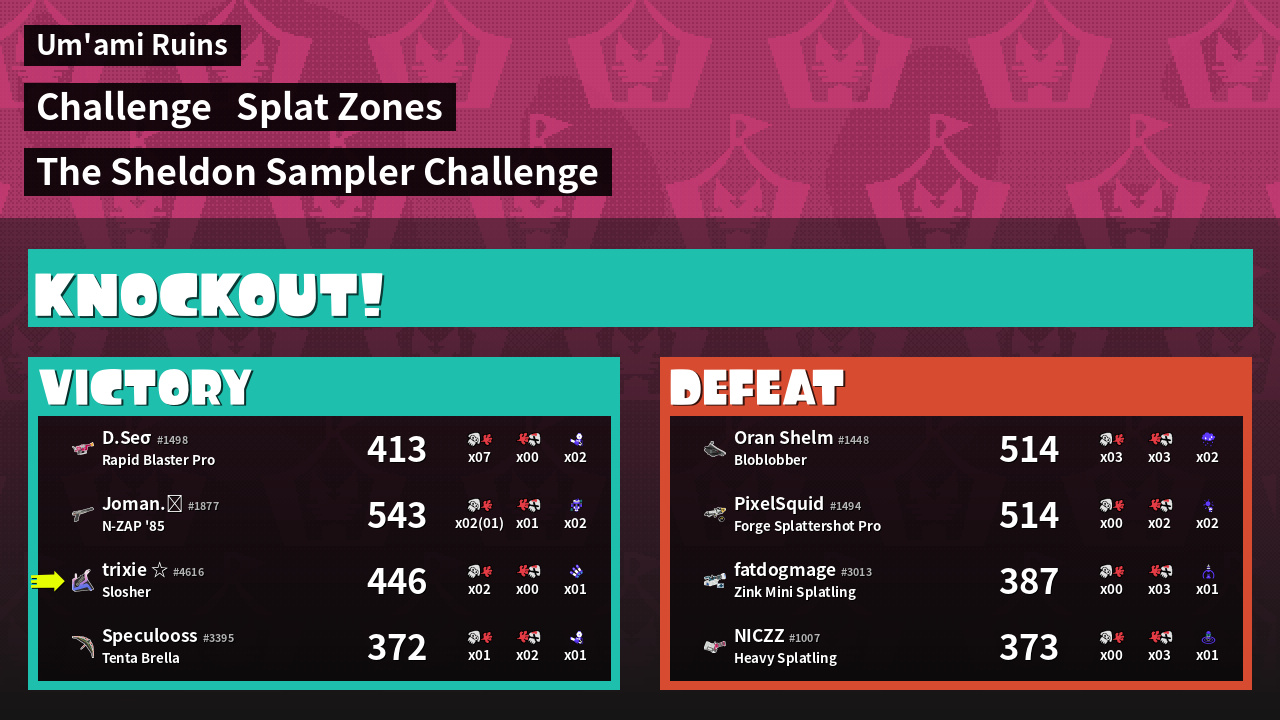 | Medals | #1 Splat Zone Hero #1 Ink Consumer #2 Overall Splatter | ||