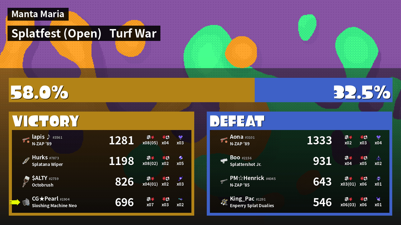 | Weapon | Sloshing Machine Neo ( Point Sensor / Trizooka) | ||