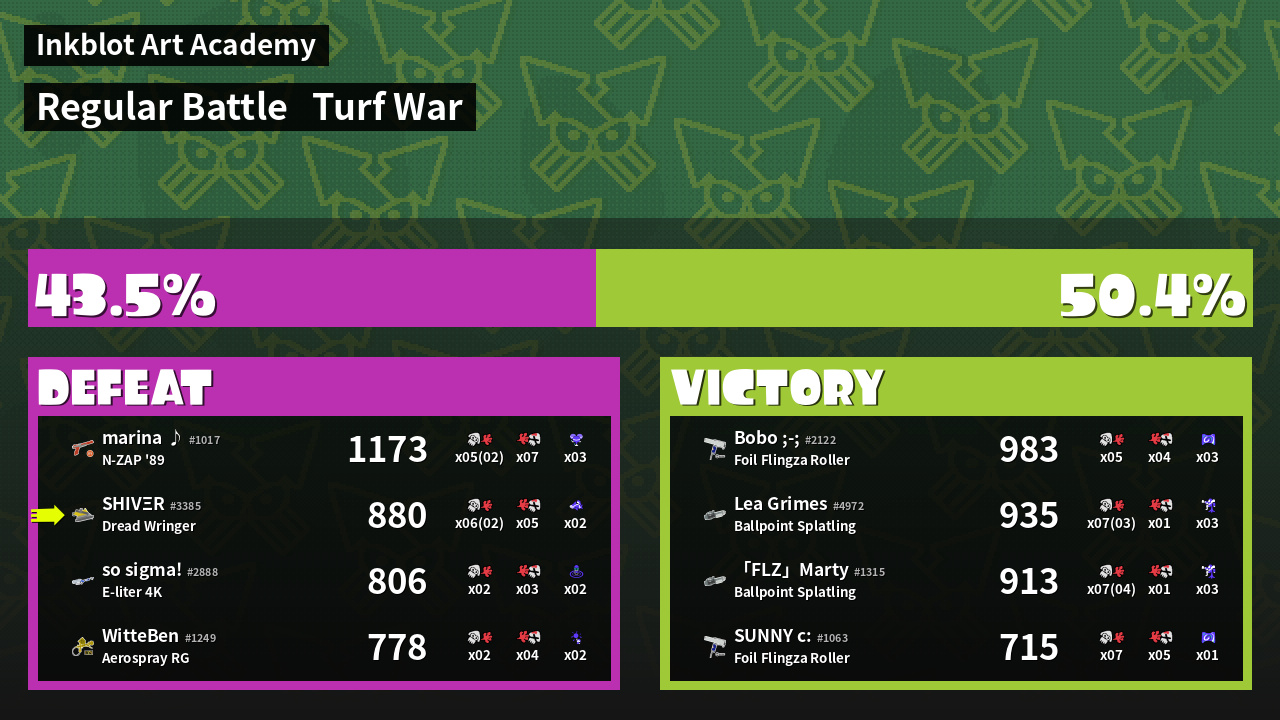 | Medals | #1 Overall Splatter #1 Enemy Splatter #1 Splat Assister | ||
