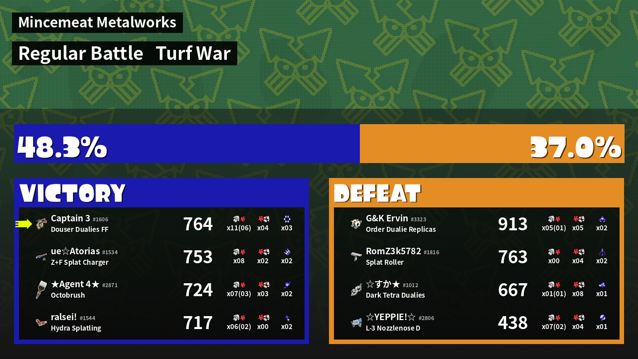 | Mode | Turf War - Regular Battle | ||