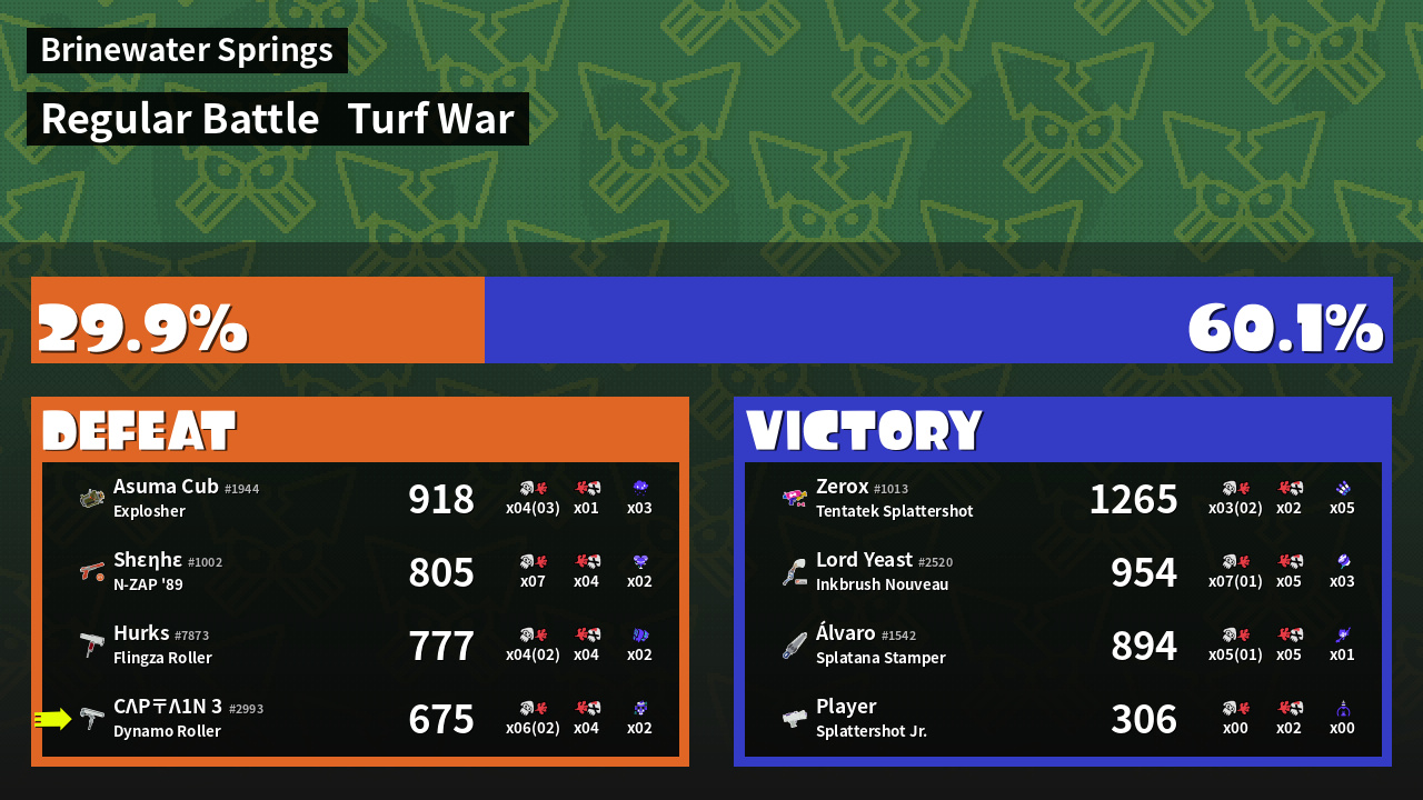 | Weapon | Dynamo Roller ( Sprinkler / Tacticooler) | ||