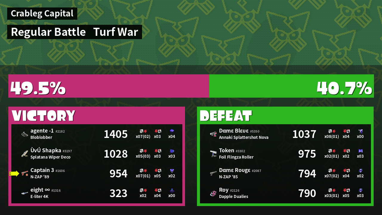 | Medals | #1 Overall Splatter #1 Enemy-Base Inker #1 Enemy Splatter | ||
