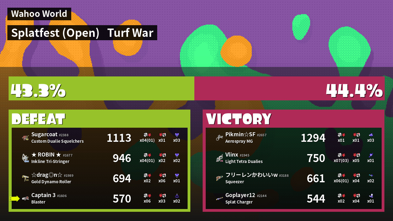 | Medals | #1 Overall Splatter #1 Enemy-Base Inker #1 Enemy Splatter | ||