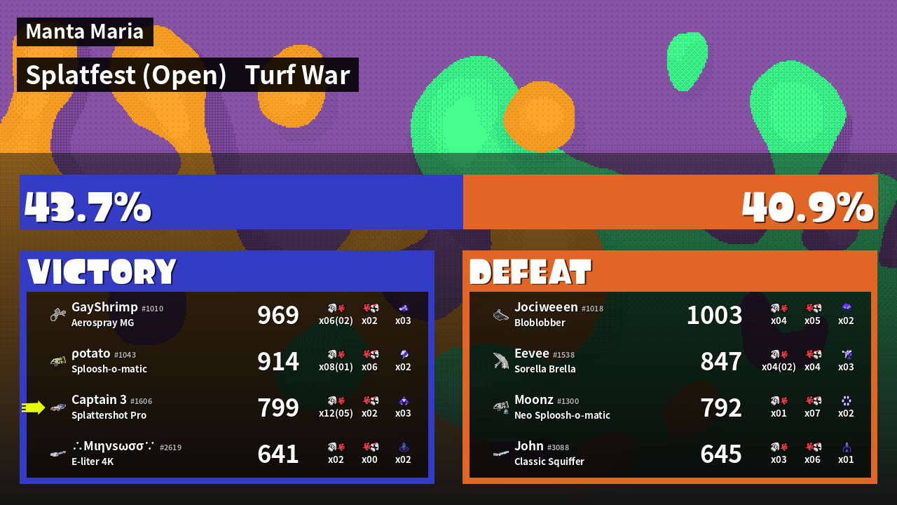 | Medals | #1 Overall Splatter #1 Enemy Splatter #1 Splat Assister | ||