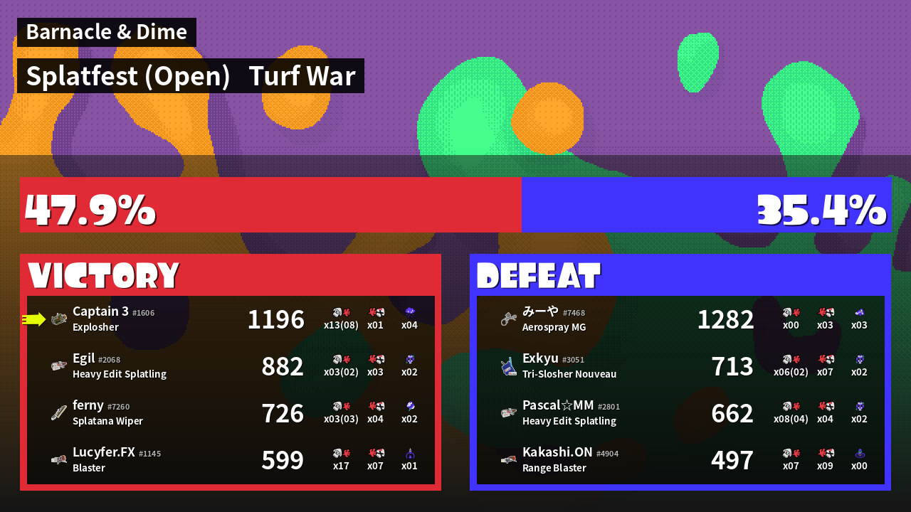 | Medals | #1 Turf Inker #1 Enemy-Base Inker #1 Splat Assister | ||
