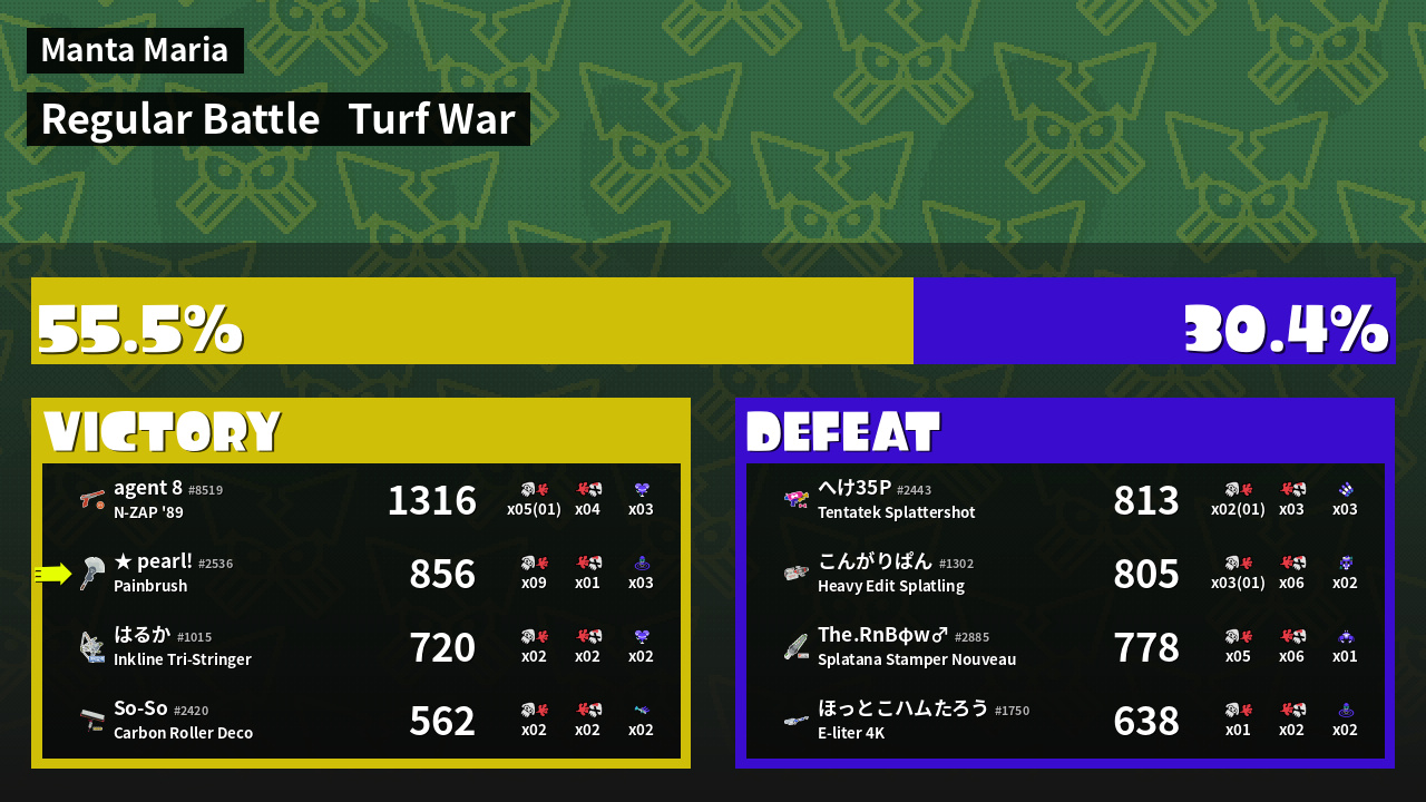 | Mode | Turf War - Regular Battle | ||
