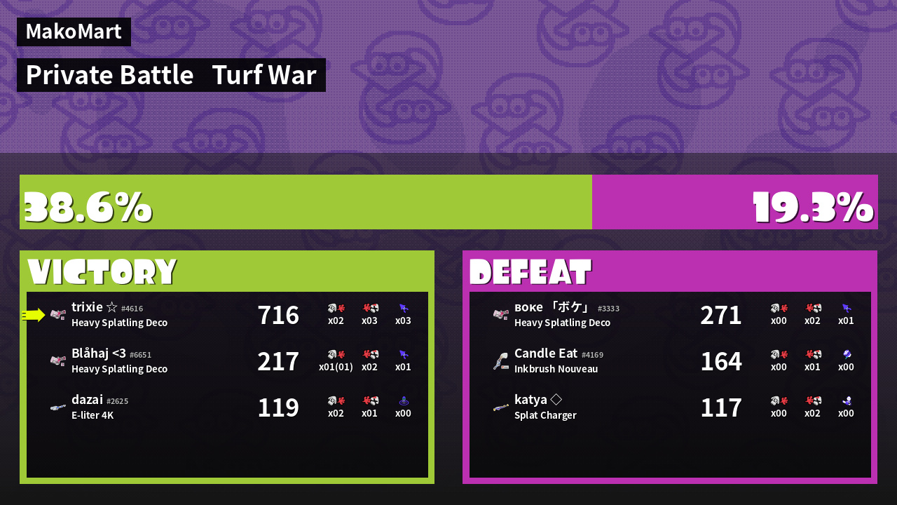 | Medals | #1 Overall Splatter #1 Turf Inker #1 Popular Target | ||