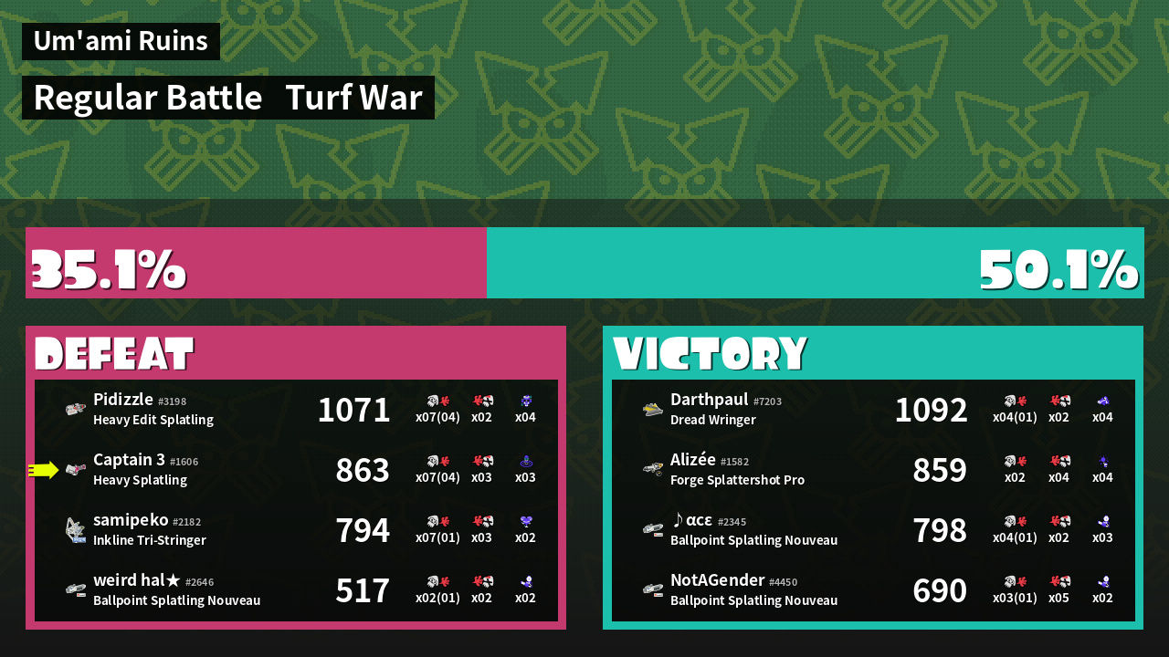 | Mode | Turf War - Regular Battle | ||