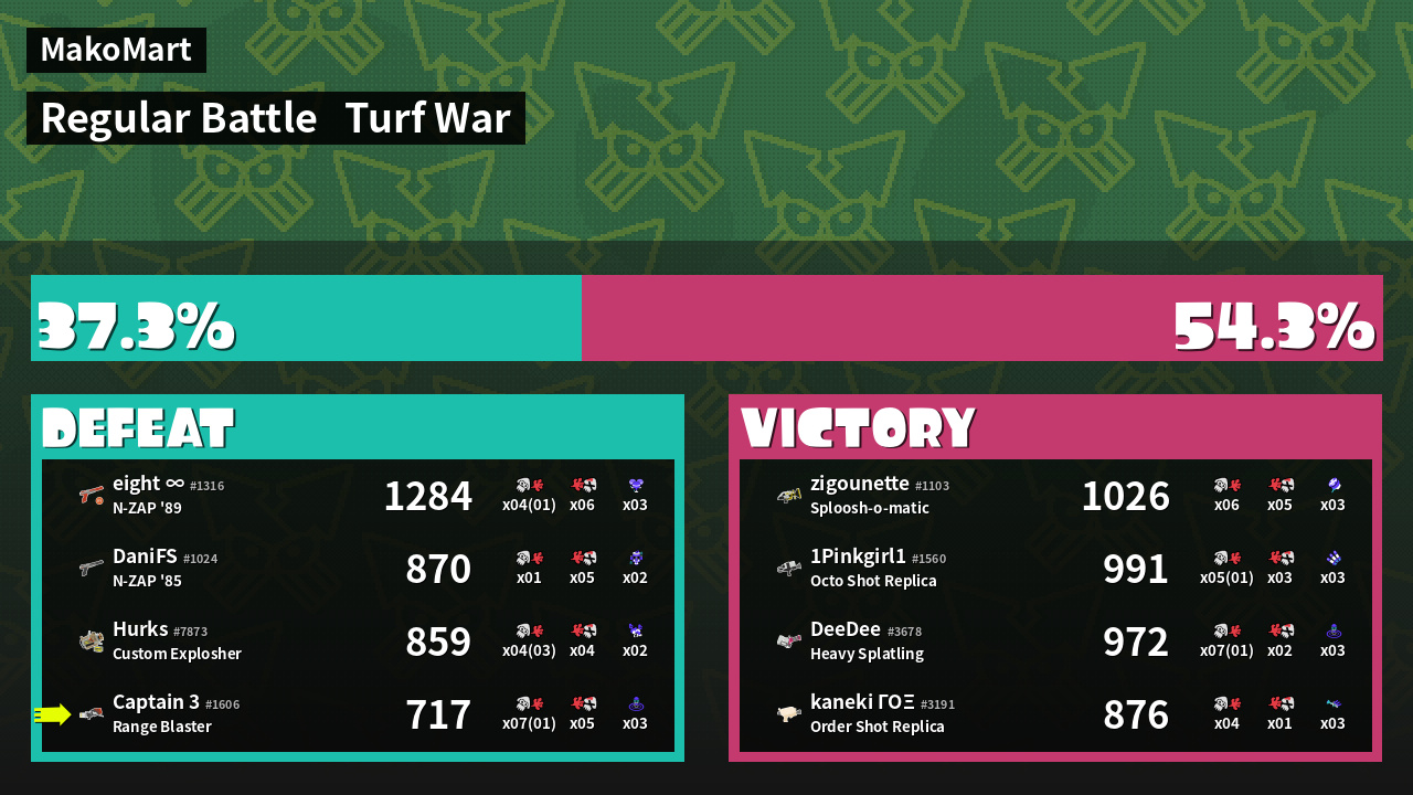 | Mode | Turf War - Regular Battle | ||