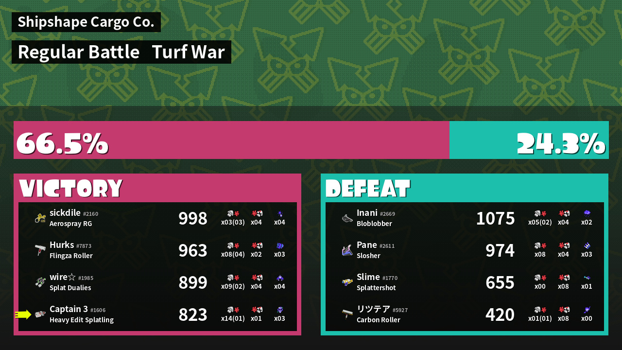 | Mode | Turf War - Regular Battle | ||
