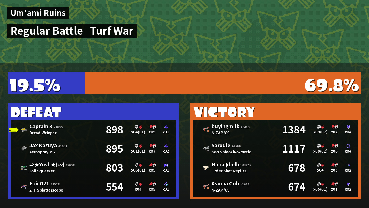 | Mode | Turf War - Regular Battle | ||