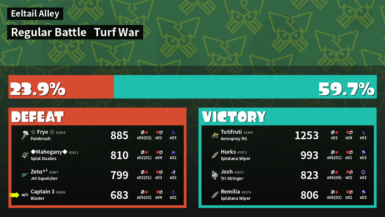 | Medals | #1 Popular Target #1 Splat Assister #1 Base Defender | ||