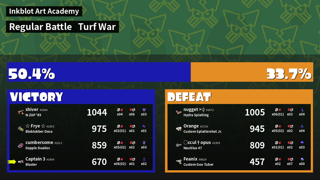 | Mode | Turf War - Regular Battle | ||