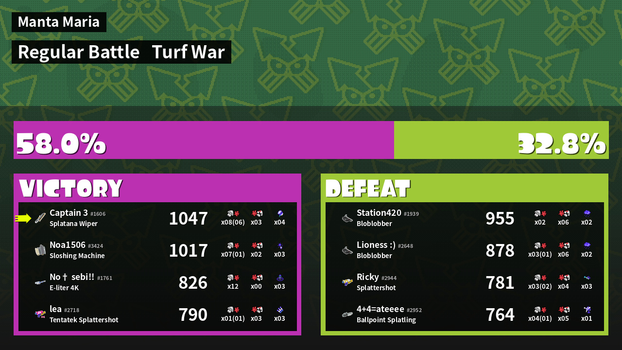 | Mode | Turf War - Regular Battle | ||