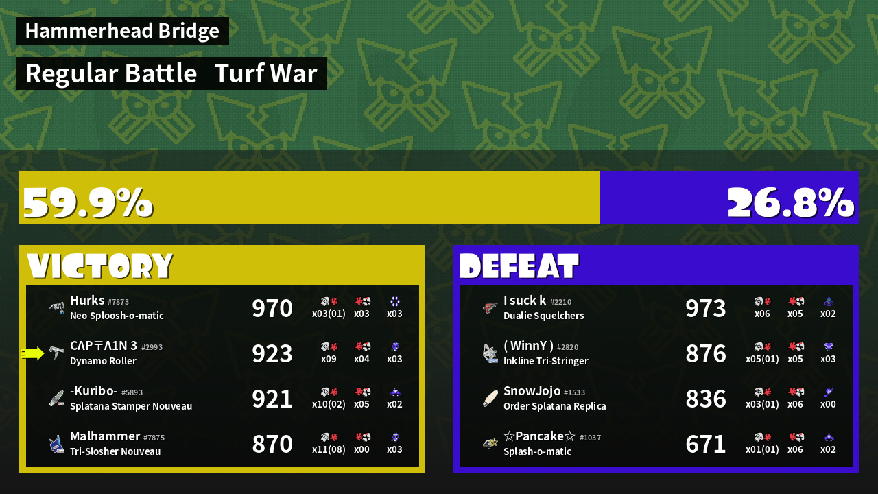 | Weapon | Dynamo Roller ( Sprinkler / Tacticooler) | ||