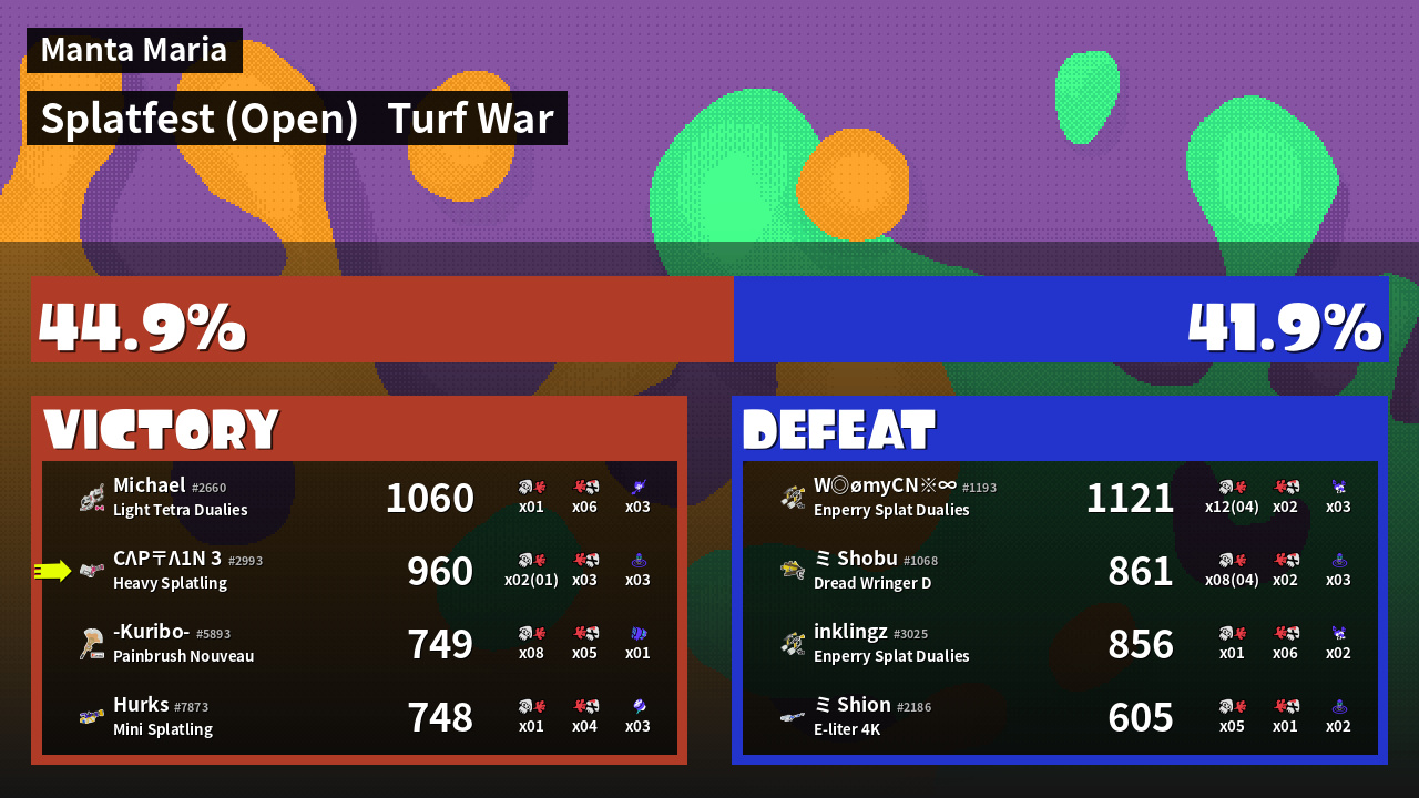 | Mode | Turf War - Splatfest (Open) | ||