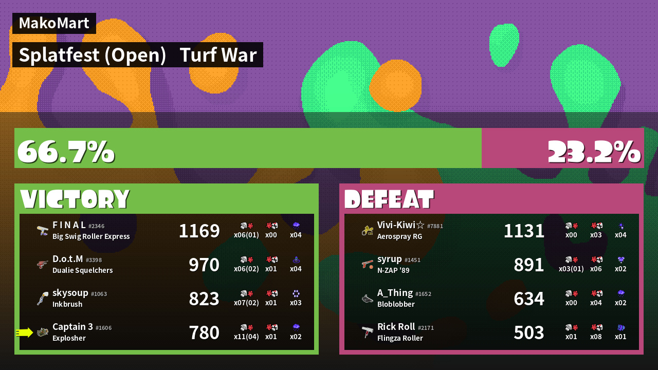 | Medals | #1 Overall Splatter #1 Popular Target #1 Enemy Splatter | ||