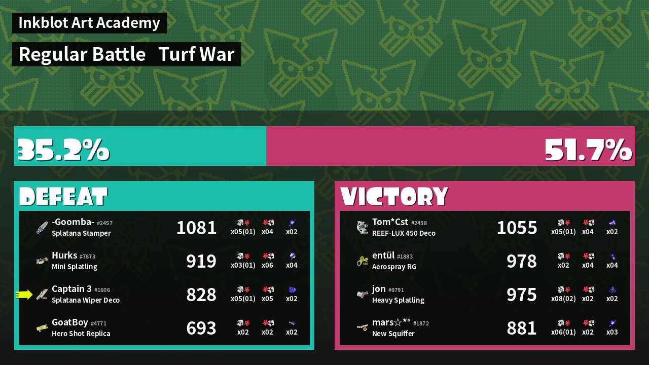 | Medals | #1 Overall Splatter #1 Enemy Splatter #1 Splat Assister | ||