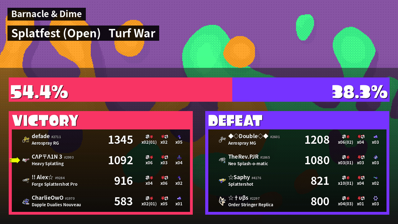| Medals | #1 Overall Splatter #1 Enemy Splatter #1 Damage Taker | ||