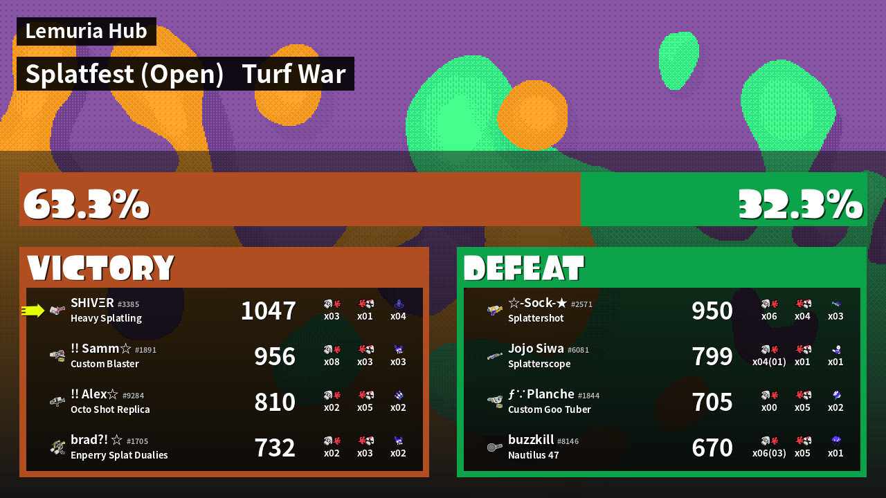 | Medals | #1 Turf Inker #1 Super Jump Spot #2 Overall Splatter | ||