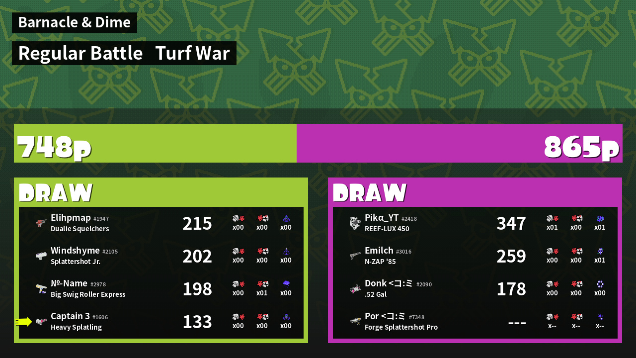 | Mode | Turf War - Regular Battle | ||