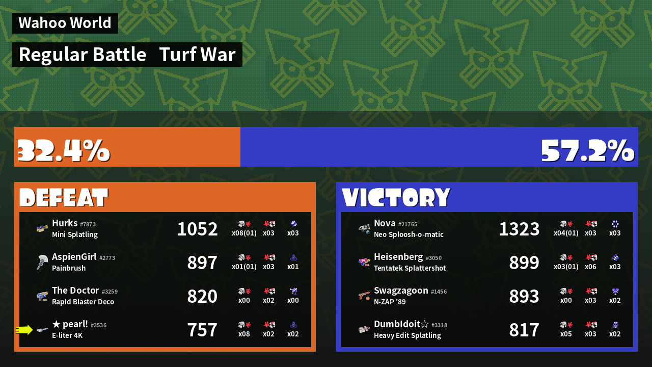| Mode | Turf War - Regular Battle | ||
