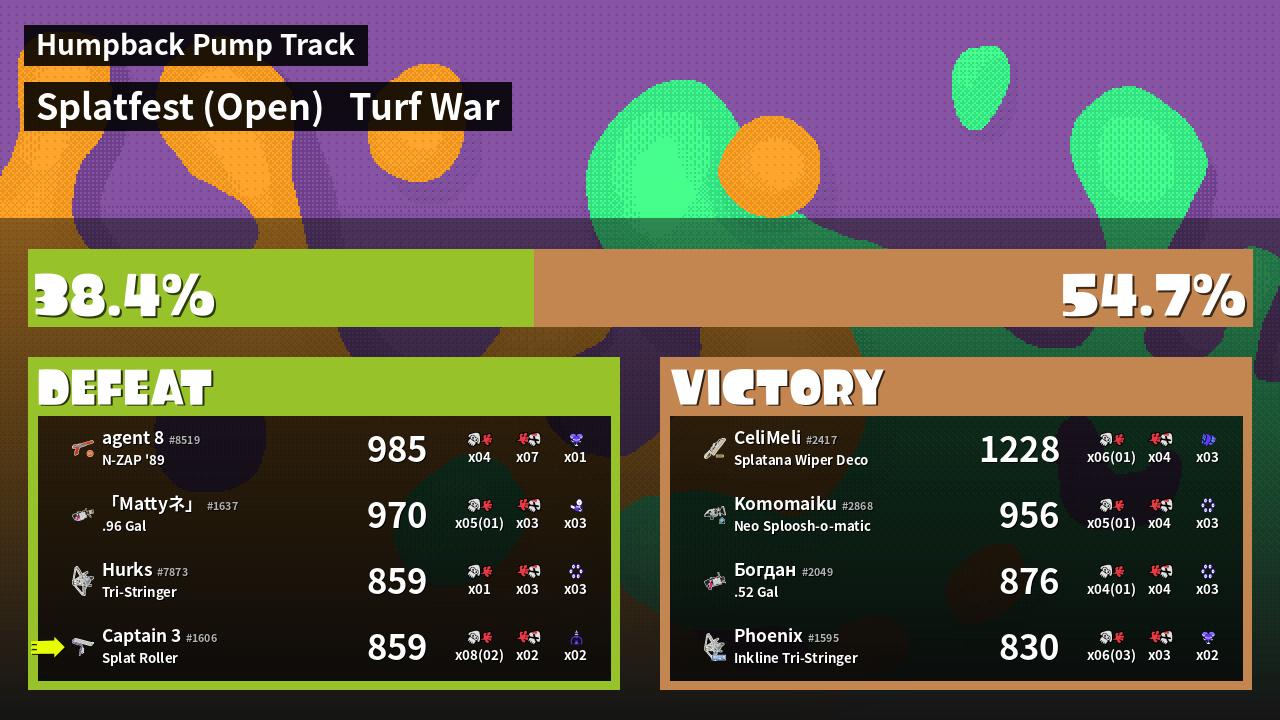 | Medals | #1 Overall Splatter #1 Enemy Splatter #1 Splat Assister | ||