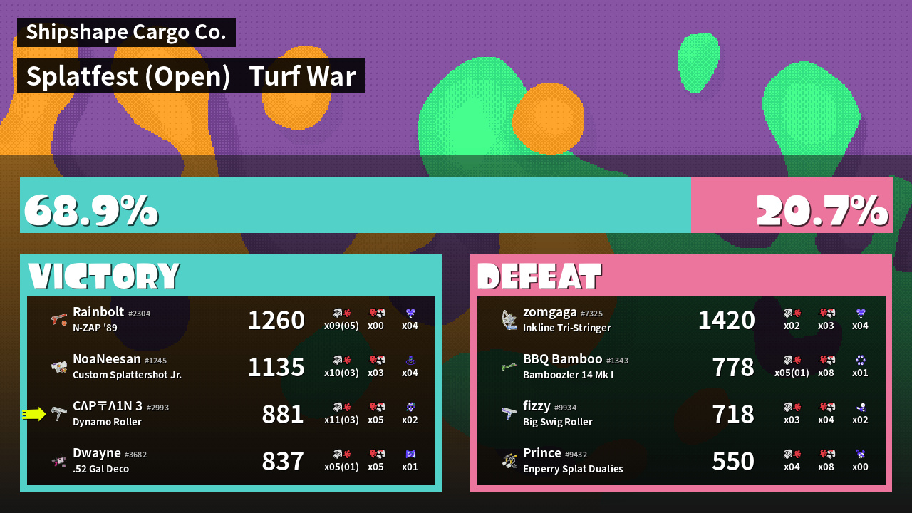 | Medals | #1 Overall Splatter #1 Popular Target #1 Enemy Splatter | ||