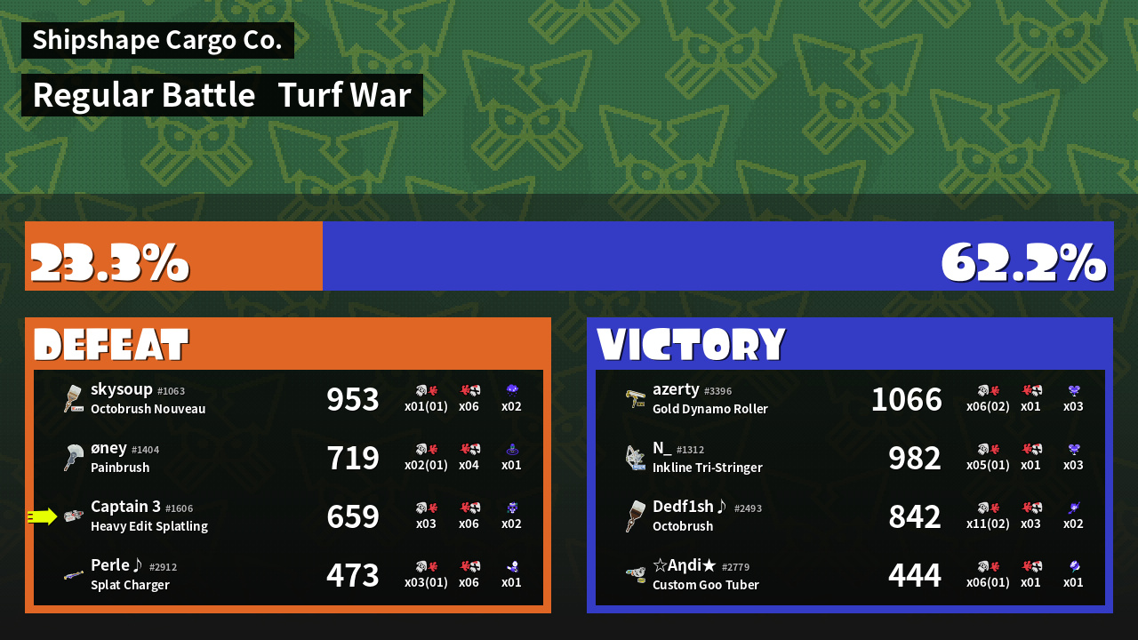 | Medals | #1 Overall Splatter #1 Popular Target #1 Enemy-Base Inker | ||