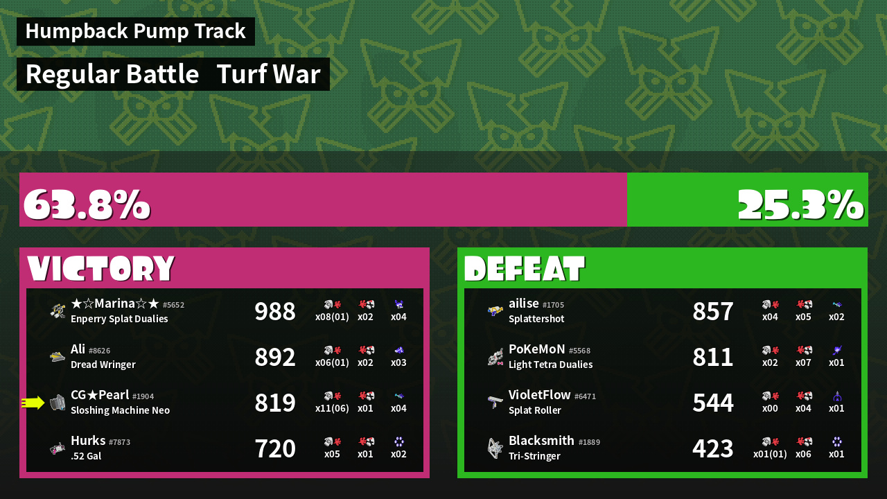 | Medals | #1 Overall Splatter #1 Splat Assister #1 Ink Consumer | ||