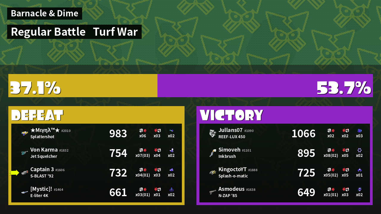 | Mode | Turf War - Regular Battle | ||