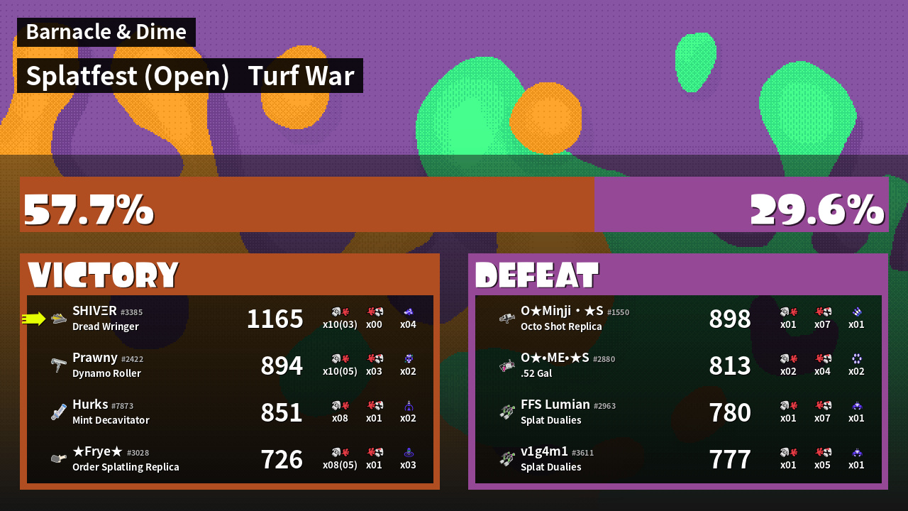 | Mode | Turf War - Splatfest (Open) | ||
