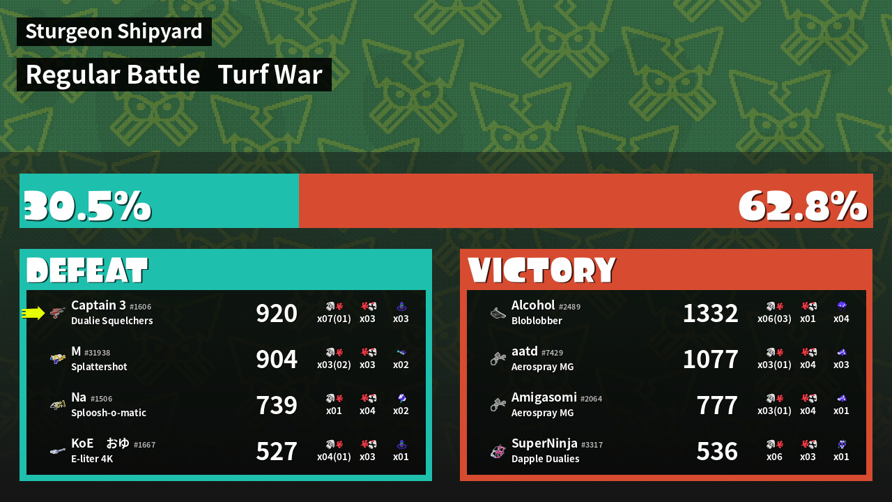 | Mode | Turf War - Regular Battle | ||