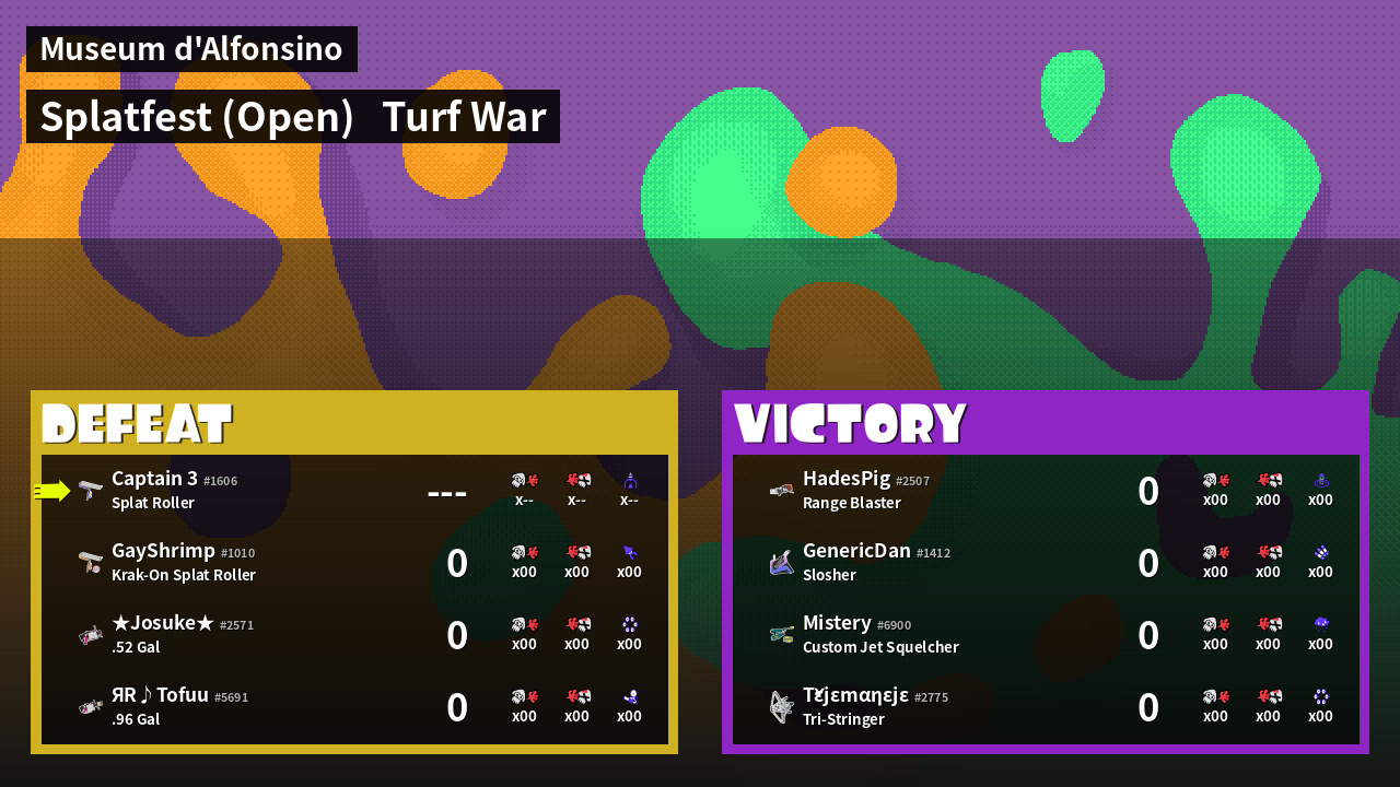 | Weapon | Splat Roller ( Curling Bomb / Big Bubbler) | ||