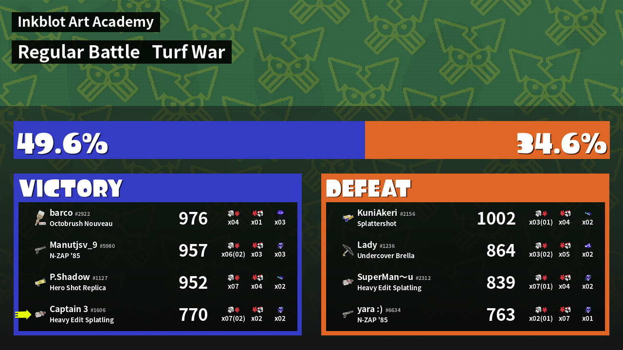 | Mode | Turf War - Regular Battle | ||